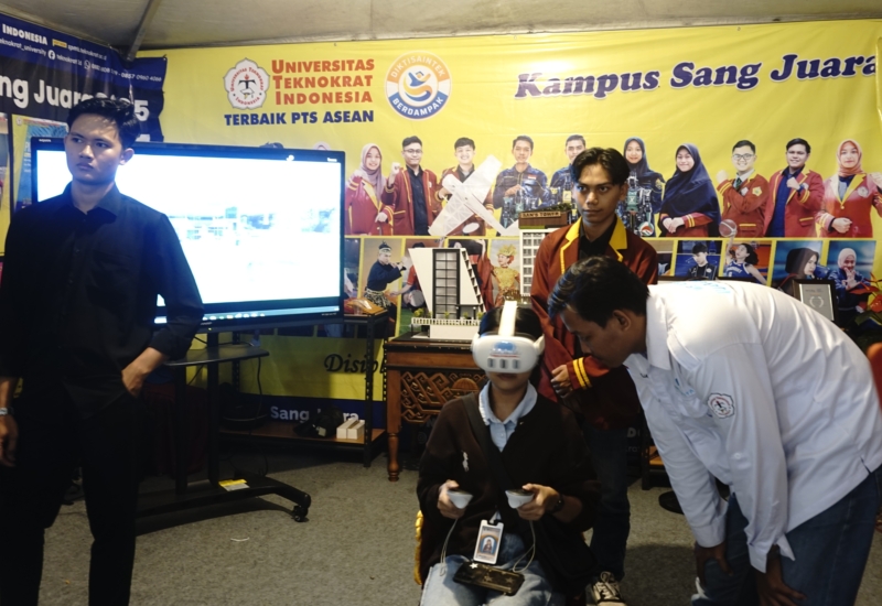 Dalam simulasi tersebut, pengunjung bisa menjelajahi lingkungan kampus secara virtual, serupa pengalaman bermain gim seperti Roblox, namun dengan nuansa khas Teknokrat. Untuk pengalaman yang lebih nyata, pengunjung juga dipersilakan mencoba headset Virtual Reality (VR) yang tersedia di stan.