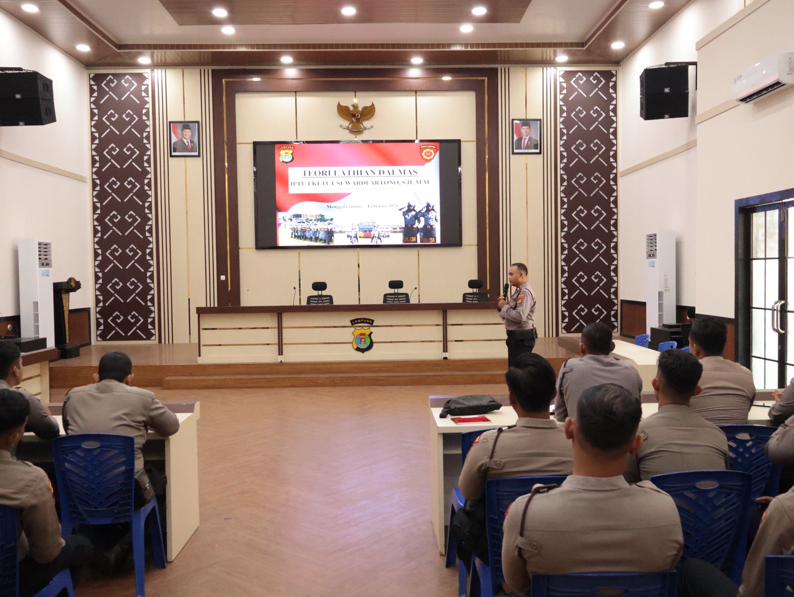 SIBERMEDIA. NET, Tulang Bawang – Dalam rangka mengantisipasi potensi eskalasi unjuk rasa dan menjaga stabilitas kamtibmas tetap kondusif, Polres Tulang Bawang melalui Satuan Samapta menggelar kegiatan Latihan Peningkatan Kemampuan (Latkatpuan) Teori Dalmas Fungsi Teknis, Rabu (25/02/2026), pukul 08.30 WIB hingga selesai, bertempat di Aula Mapolres.